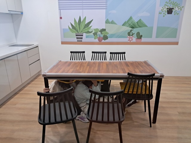 긴장한 모습의 친구들도 있었지만 질서를 지켜 차례대로 대피하고