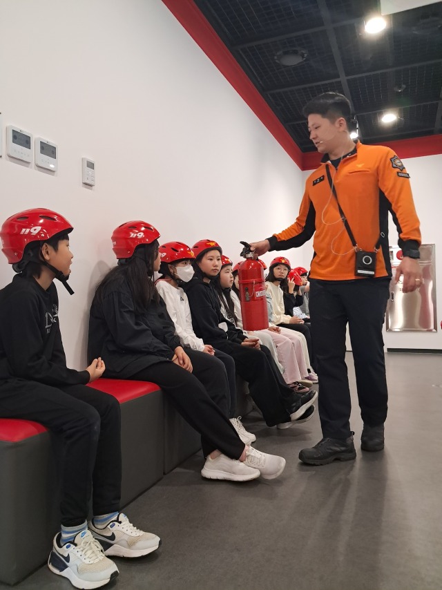 물소화기로 화재를 진압하는 체험을 하며 즐거워하는 모습도 보였어요